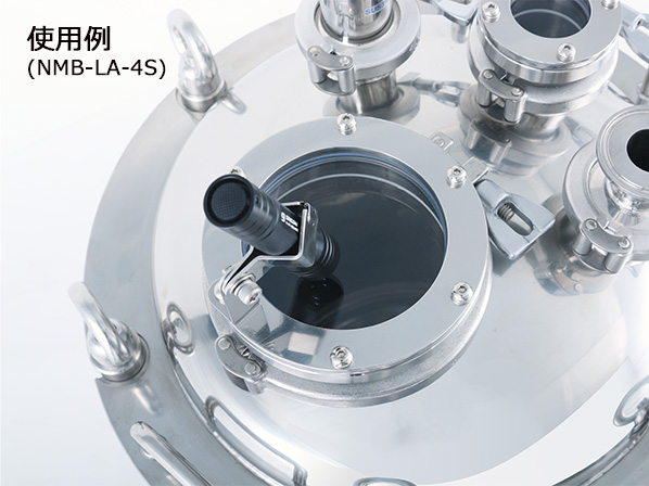 【NMB-LC】は腐食性の飛沫溶液や内容物からライトを守るステンレスケース付きです。