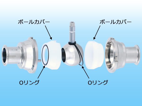 弁がPTFE製のカバーで覆われており、本体と弁の間に液が入り込まないポケットレス構造のボールバルブです。 工具不要で分解・組み立てができ、洗いやすくサニタリー性に優れています。 ワンタッチで開閉できる手動レバー式です。